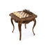 This unique table-chess featuring our copyrighted contour outline is made from one piece of beech wood. There are drawers on two sides of the table for storing chess figures. An ornamental weave pattern, incorporating complex elements, is engraved all around the playing field. The drawers and legs of the table are also covered with similar engraved patterns.  It is completely handcrafted. The surface is treated with natural beeswax. Letters, numbers, and drawer handles, in the shape of our logo, are made of cast bronze.
