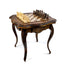 This unique table-chess featuring our copyrighted contour outline is made from one piece of beech wood. All around the playing field and the legs of the table are covered with similar engraved patterns.