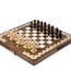 32 playing pieces, made of beech and walnut wood, with velvet fabric applied to bottom of each piece,