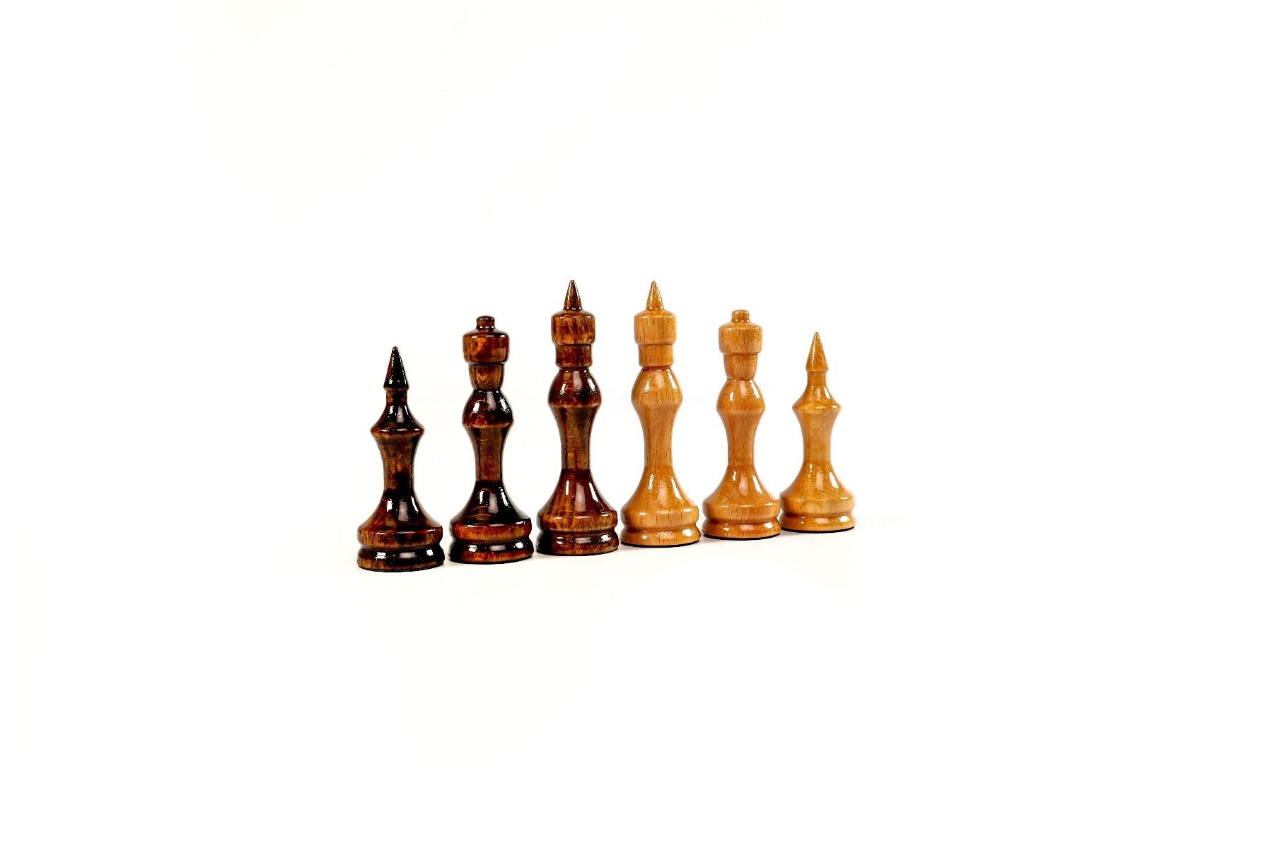 This chess figures are made of beech wood and walnut wood, and the opposite side of each figure is covered with velvet fabric.