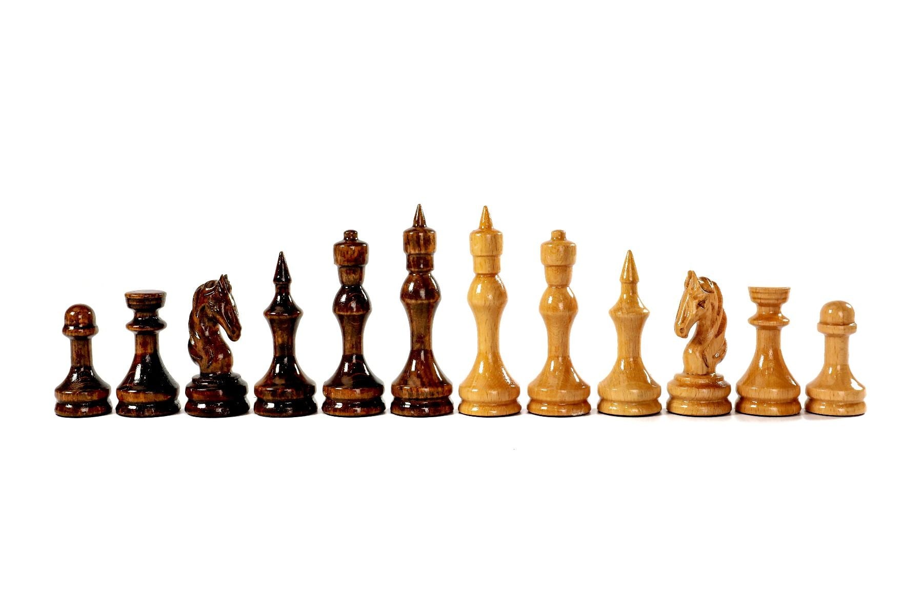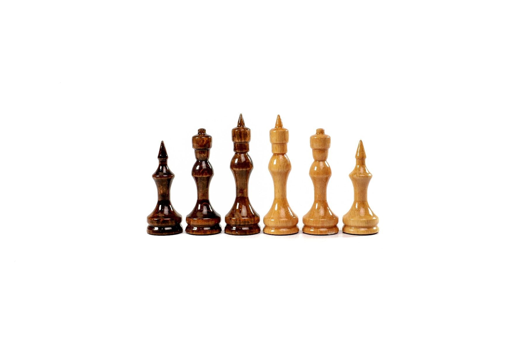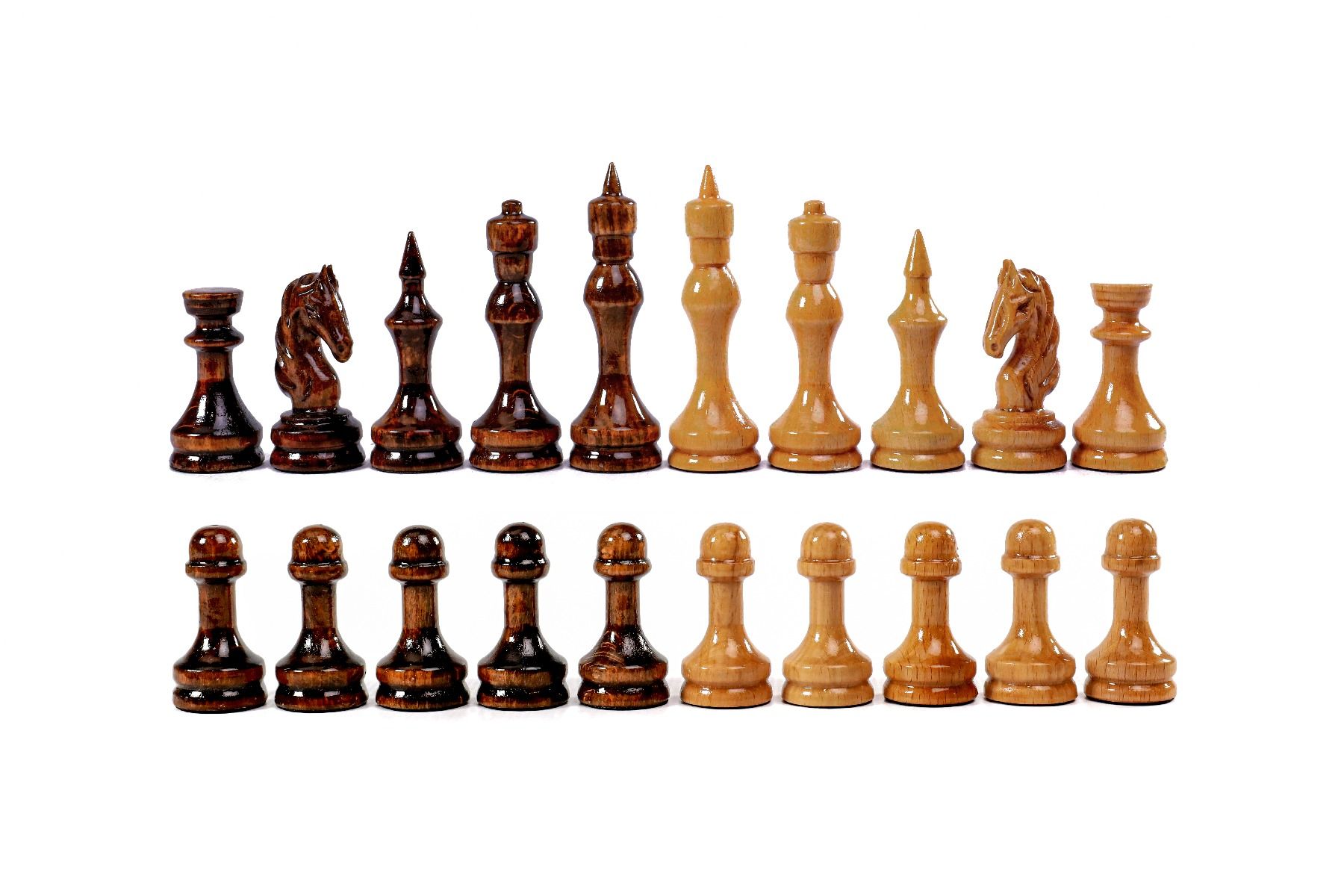 This chess figures are made of beech wood and walnut wood, and the opposite side of each figure is covered with velvet fabric.
