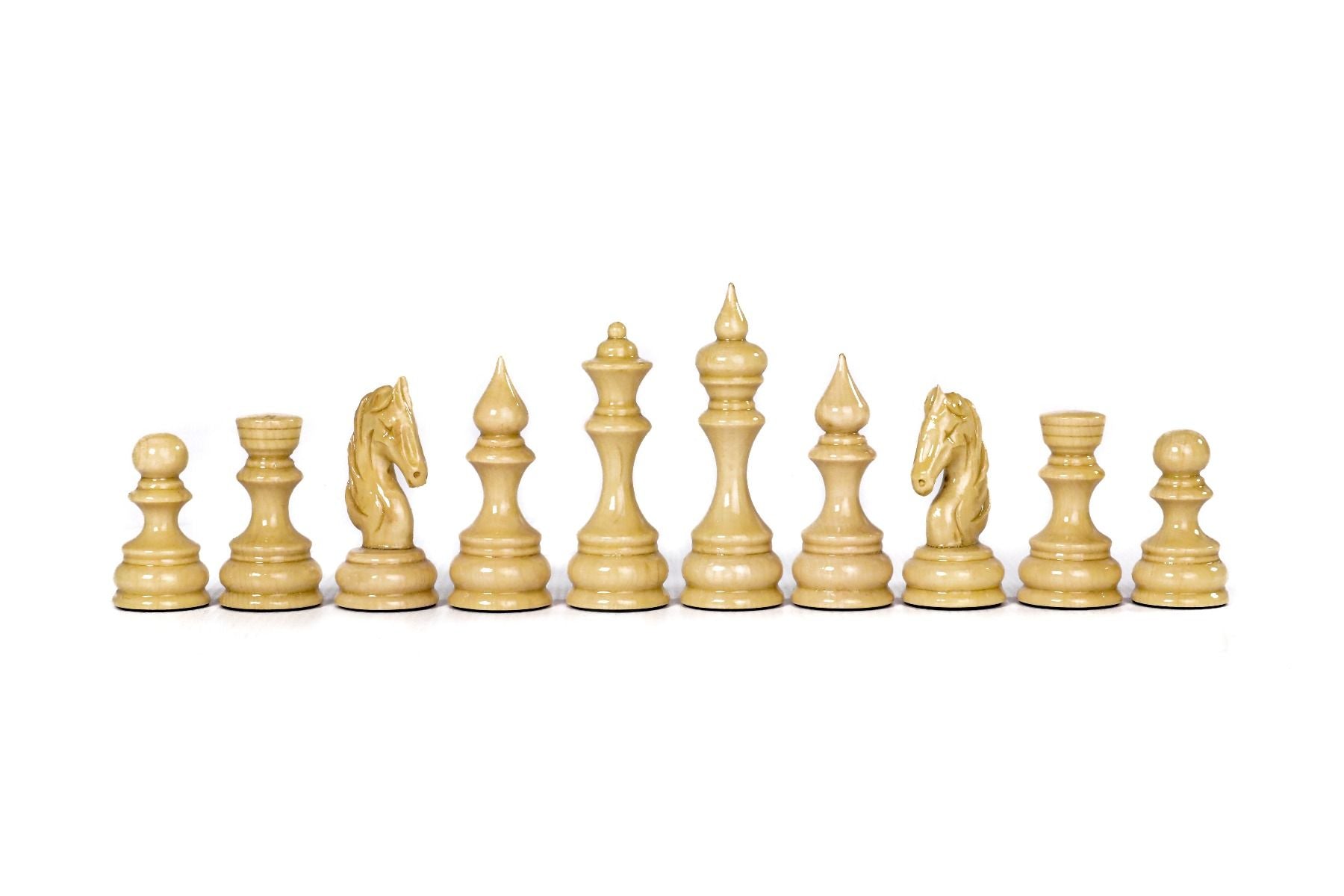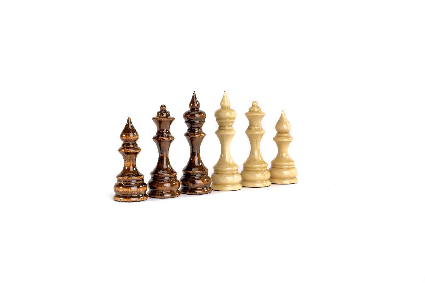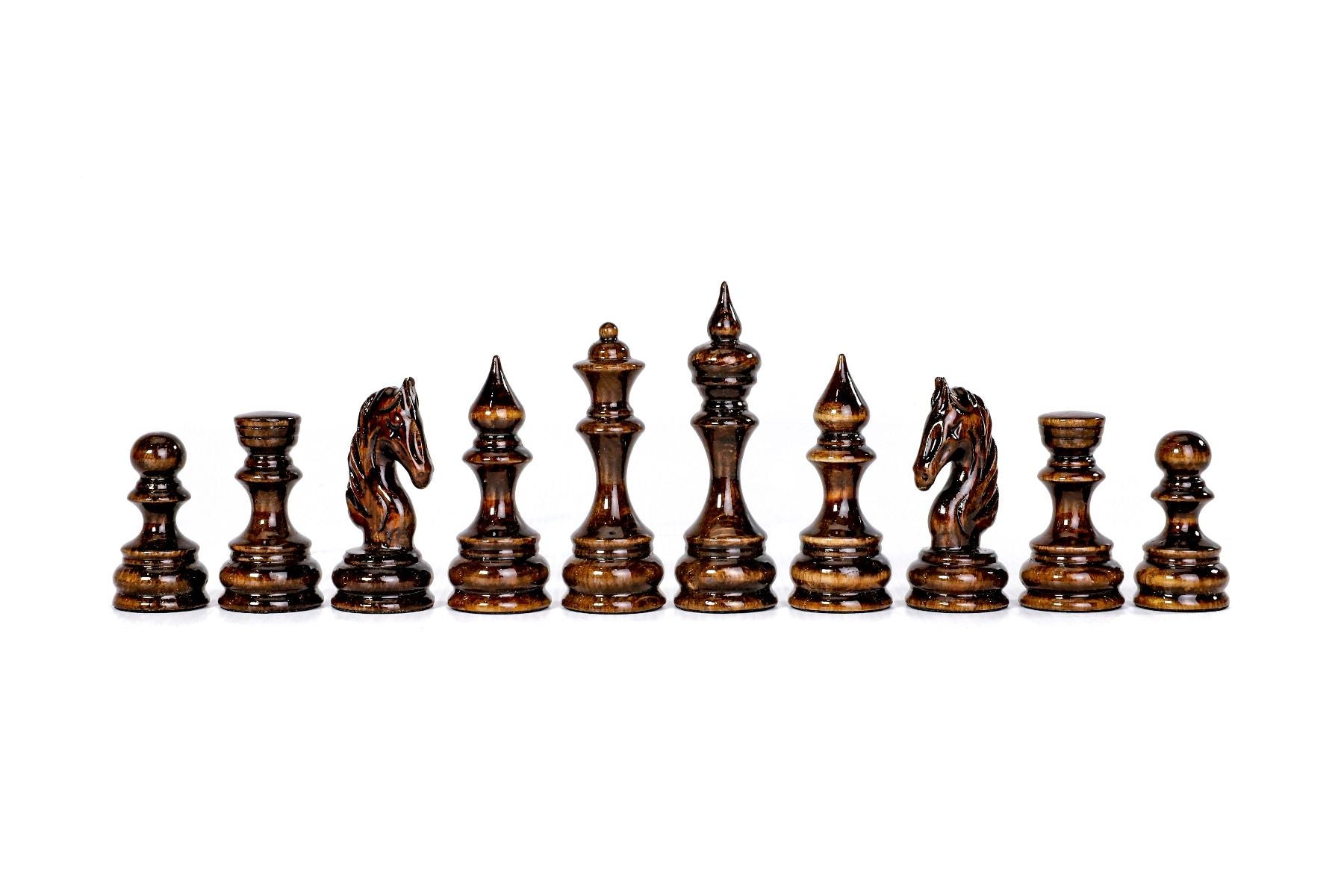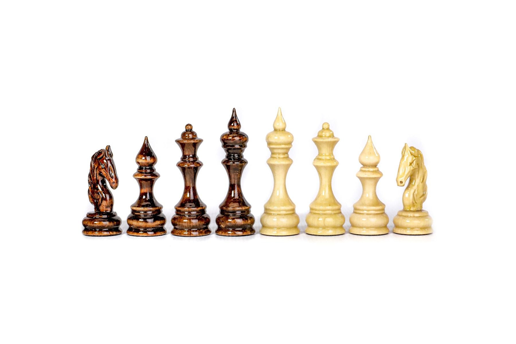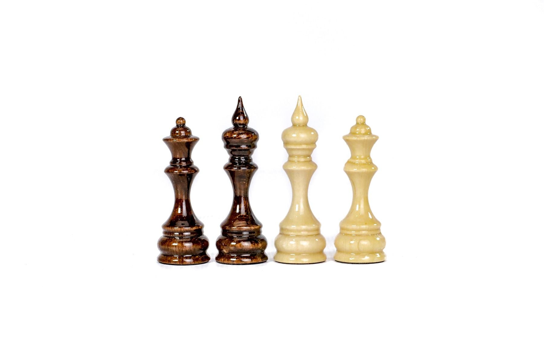 This chess figures are made of beech wood and walnut wood, and the opposite side of each figure is covered with velvet fabric.
